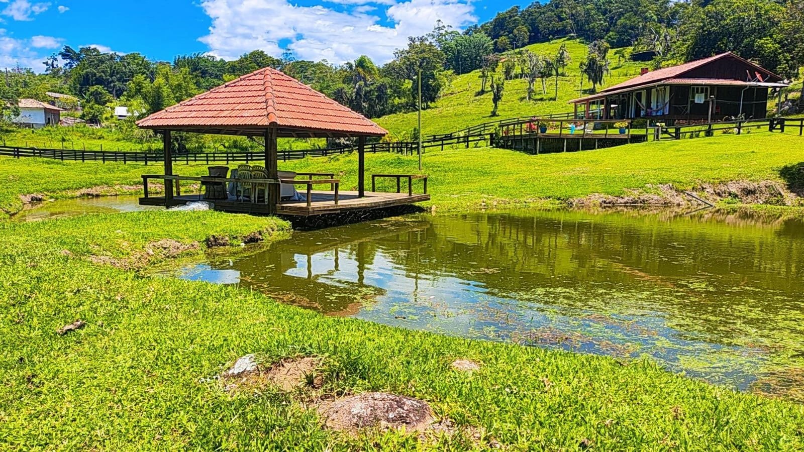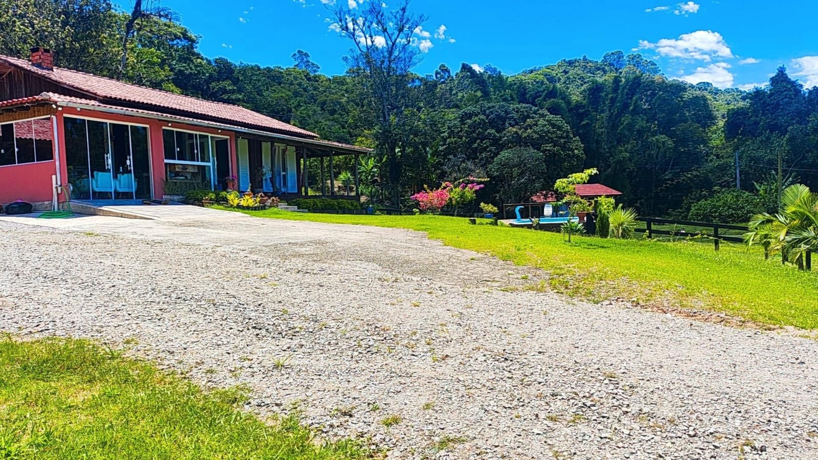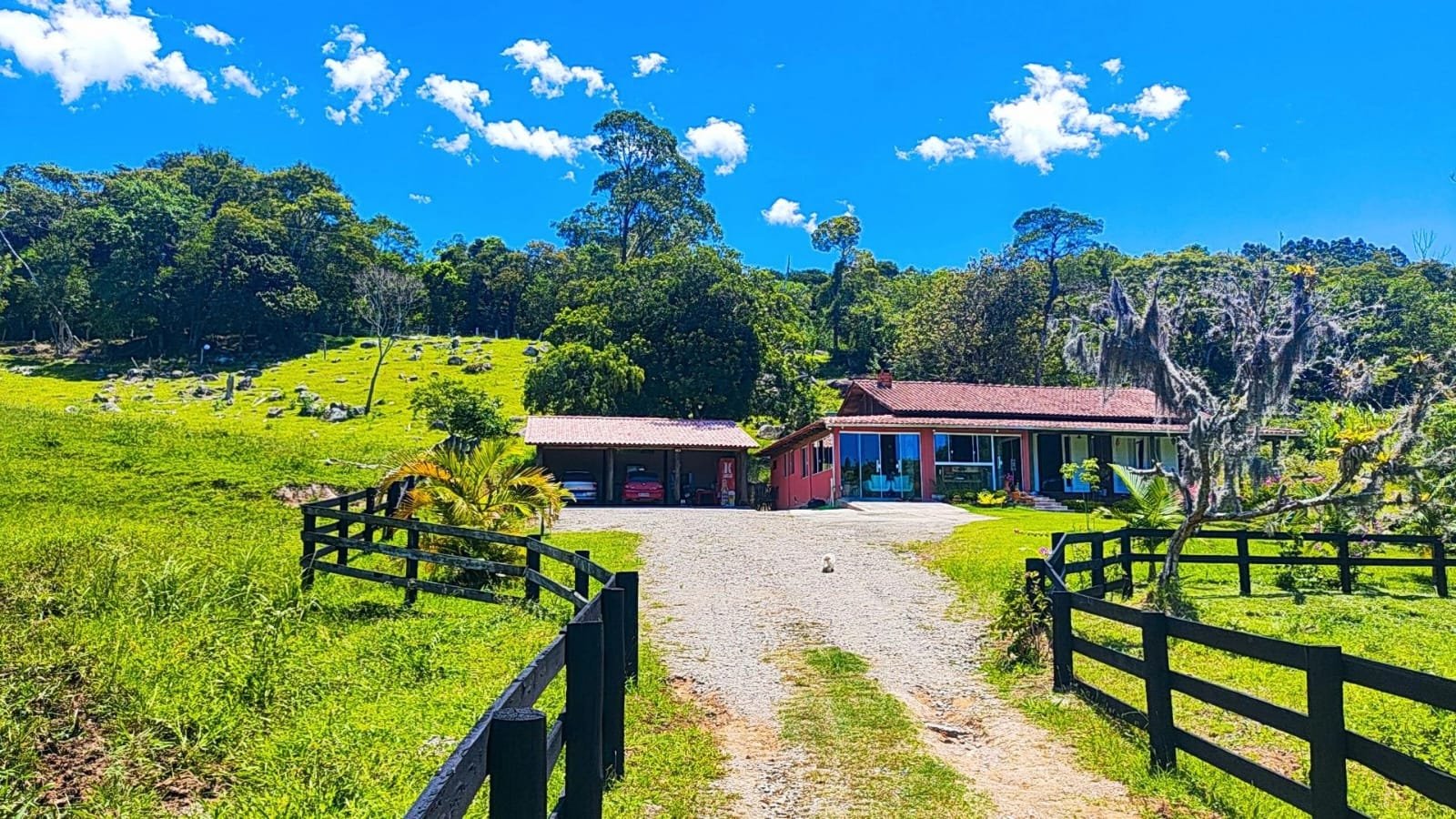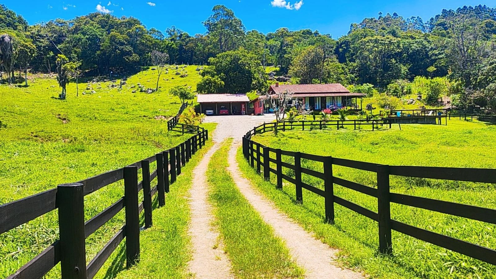 A casa principal dispõe de 3 dormitórios, duas salas e dois banheiros sociais. A área gourmet conta com a tradição do fogão a lenha e churrasqueira. Adicionalmente, o imóvel possui um galpão em construção com unidade habitacional integrada (quarto, sala e cozinha) e coxeira para cavalos.