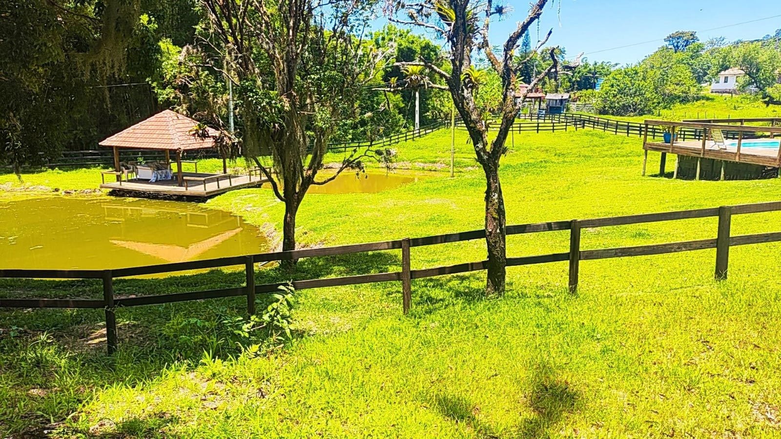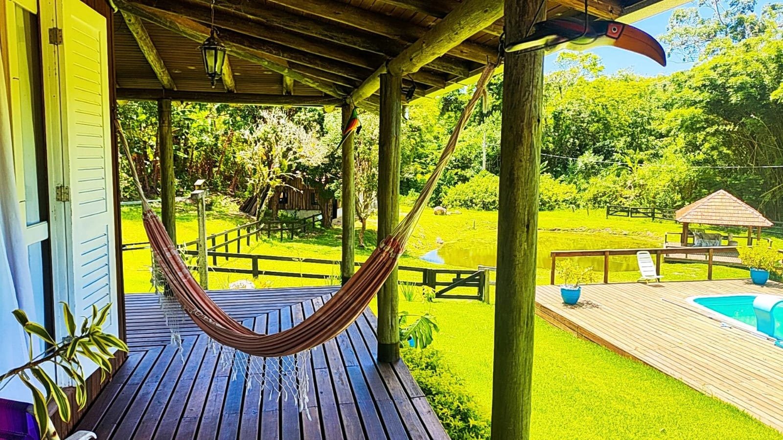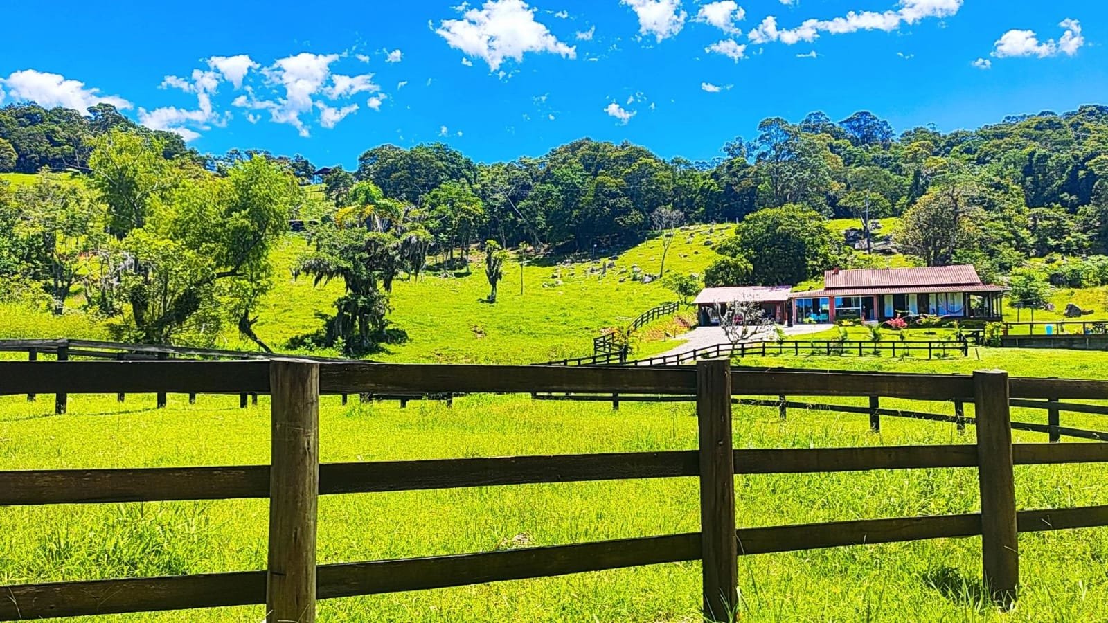 A casa principal dispõe de 3 dormitórios, duas salas e dois banheiros sociais. A área gourmet conta com a tradição do fogão a lenha e churrasqueira. Adicionalmente, o imóvel possui um galpão em construção com unidade habitacional integrada (quarto, sala e cozinha) e coxeira para cavalos.