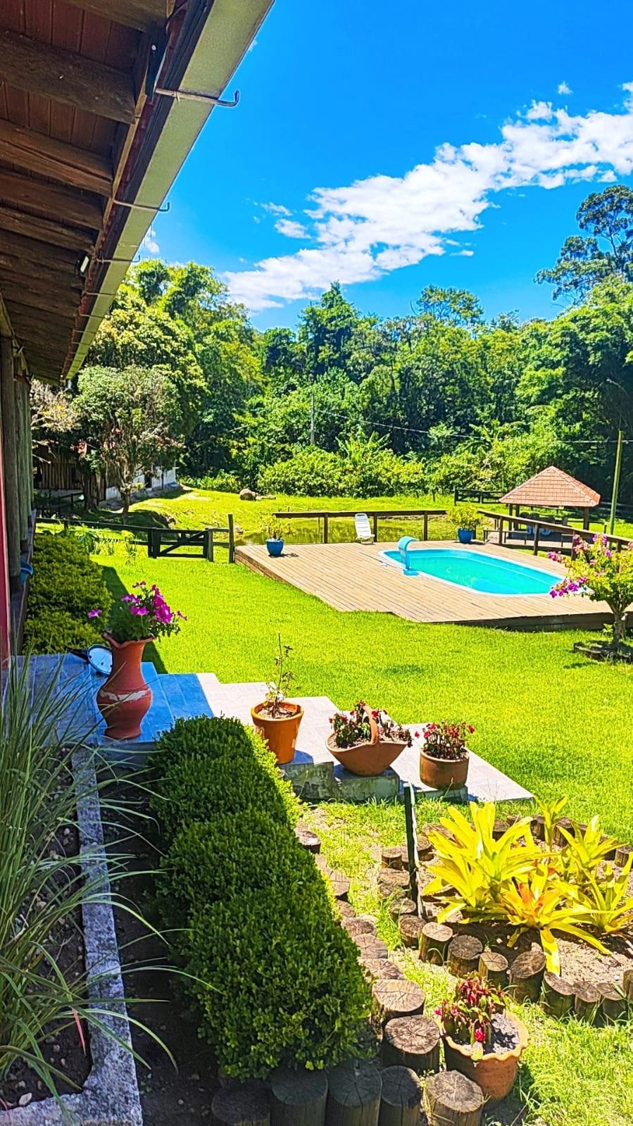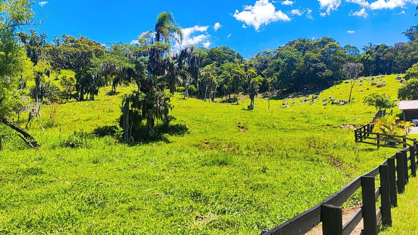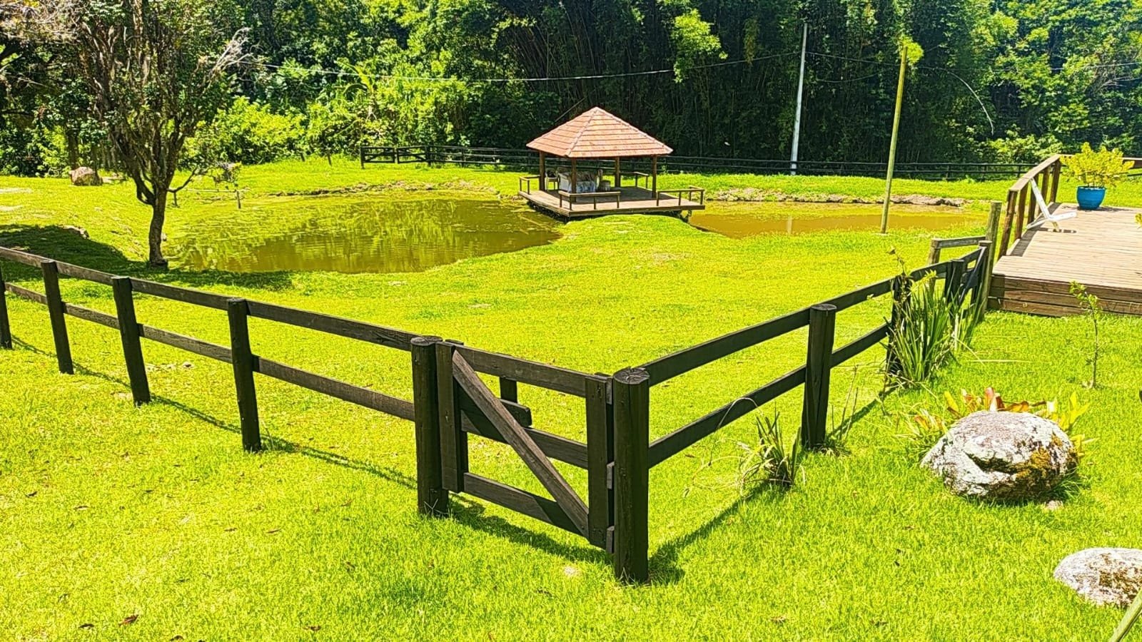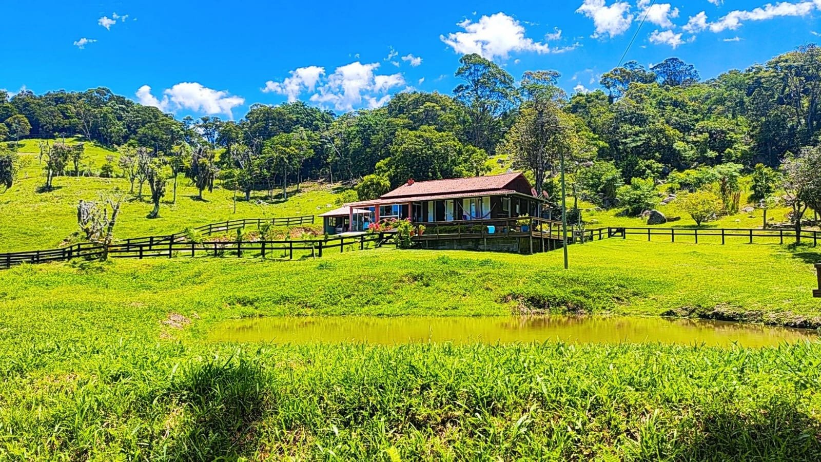 A casa principal dispõe de 3 dormitórios, duas salas e dois banheiros sociais. A área gourmet conta com a tradição do fogão a lenha e churrasqueira. Adicionalmente, o imóvel possui um galpão em construção com unidade habitacional integrada (quarto, sala e cozinha) e coxeira para cavalos.